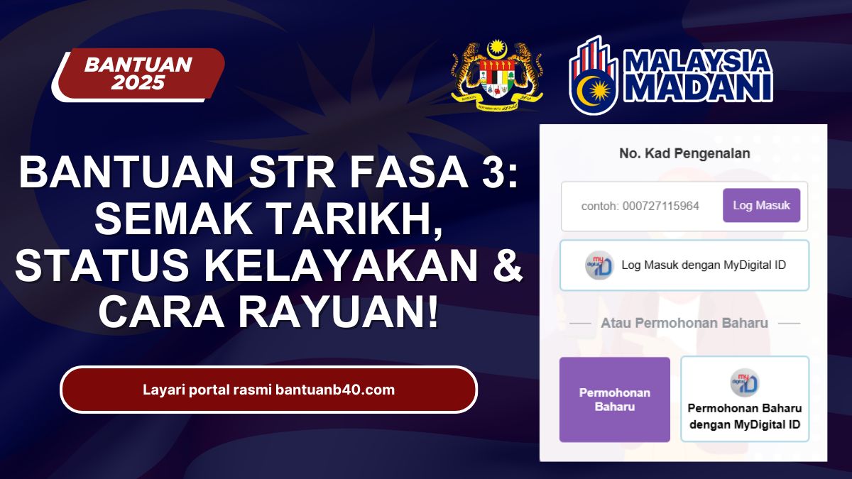 Dapatkan info terkini mengenai Bantuan STR Fasa 3! Adakah anda layak untuk menerima pembayaran kali ini? Jangan lepaskan peluang untuk semak tarikh bayaran, status kelayakan, dan cara mudah untuk membuat rayuan sekiranya permohonan anda tidak diterima!